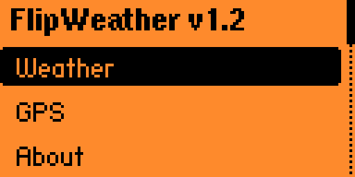 +           "FlipWeather v1.2\n-----\nUse WiFi to get GPS and \nWeather information.\n-----\nwww.github.com/jblanked",