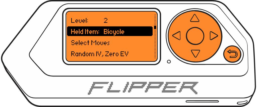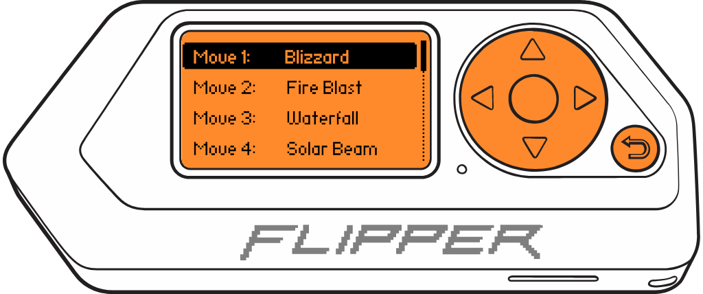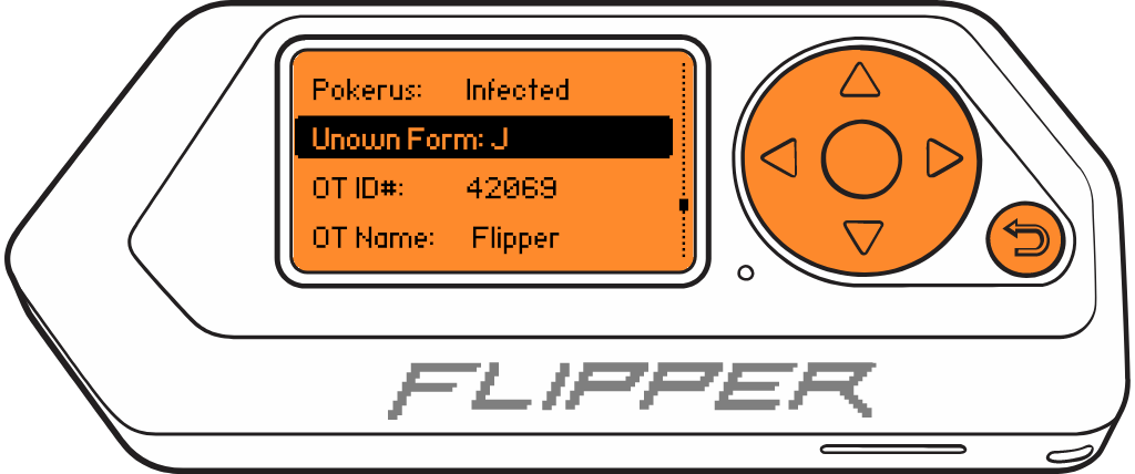 > (Gen II only) The hyphen in `HO-OH` cannot be selected on the Flipper's keyboard input; however resetting the name as noted above will restore the default name.