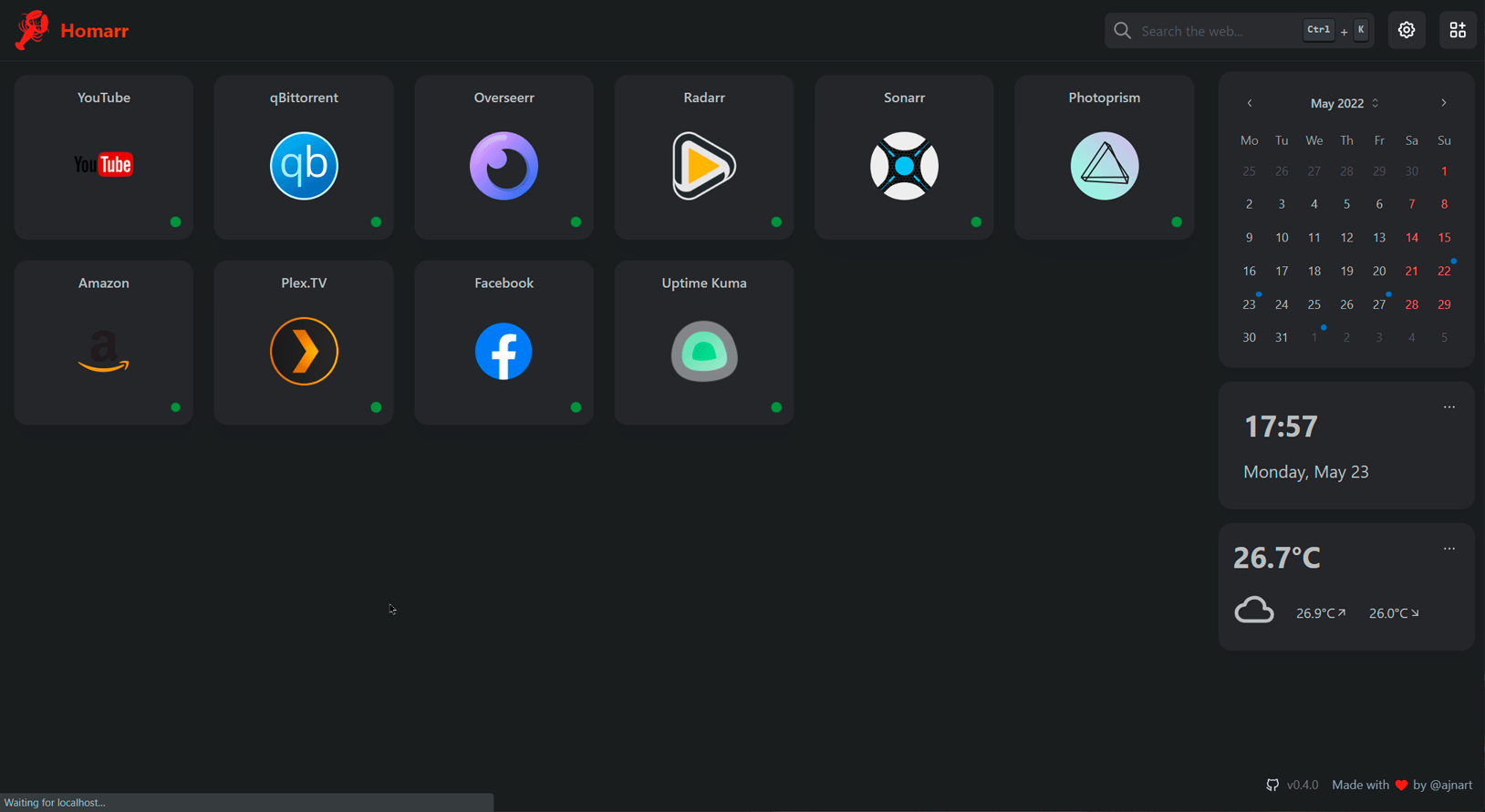 Homarr is a simple and lightweight homepage for your server, that helps you easily access all of your services in one place. It integrates with the services you use to display information on the homepage (E.g. Show upcoming Sonarr/Radarr releases).